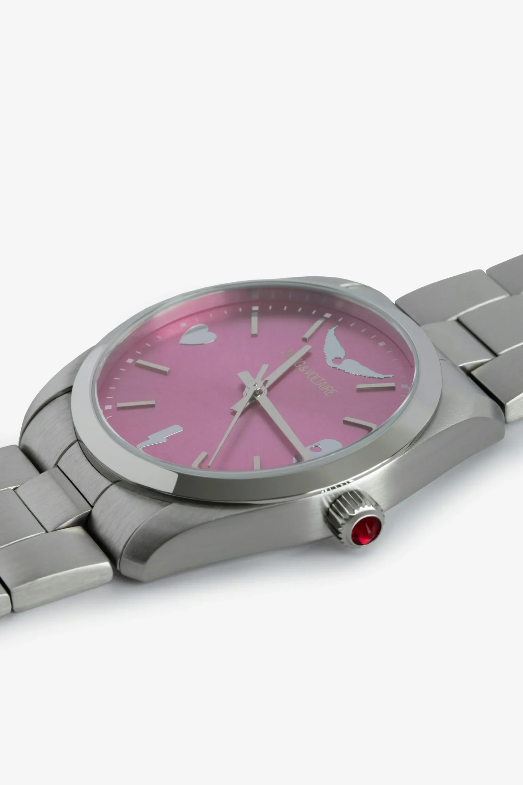 Passez À L’Heure Zadig&Voltaire Avec Cette Montre En Acier Inoxydable Sertie D’Un Strass, Au Cadran Rose Au Style Signature De La Marque.
