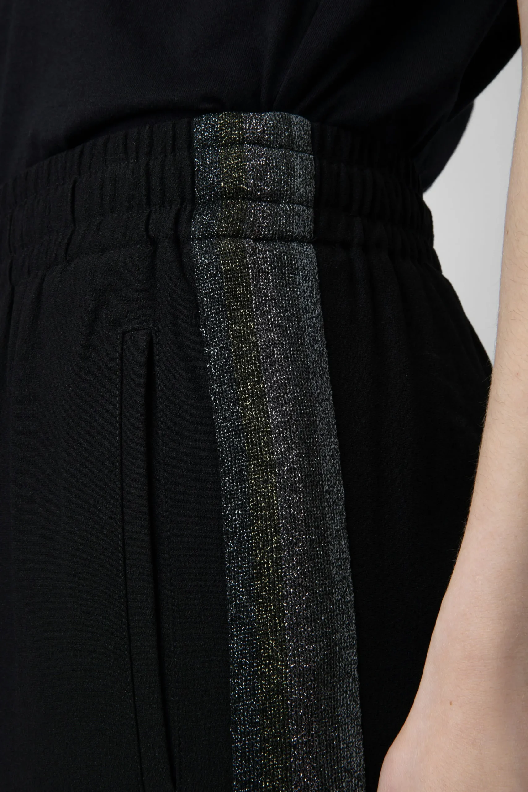 Incontournable Absolu, Ce Pantalon Décontracté Avec Cordon De Serrage À La Taille Et Poches Latérales Arbore Des Bandes Latérales Pailletées Colorées.