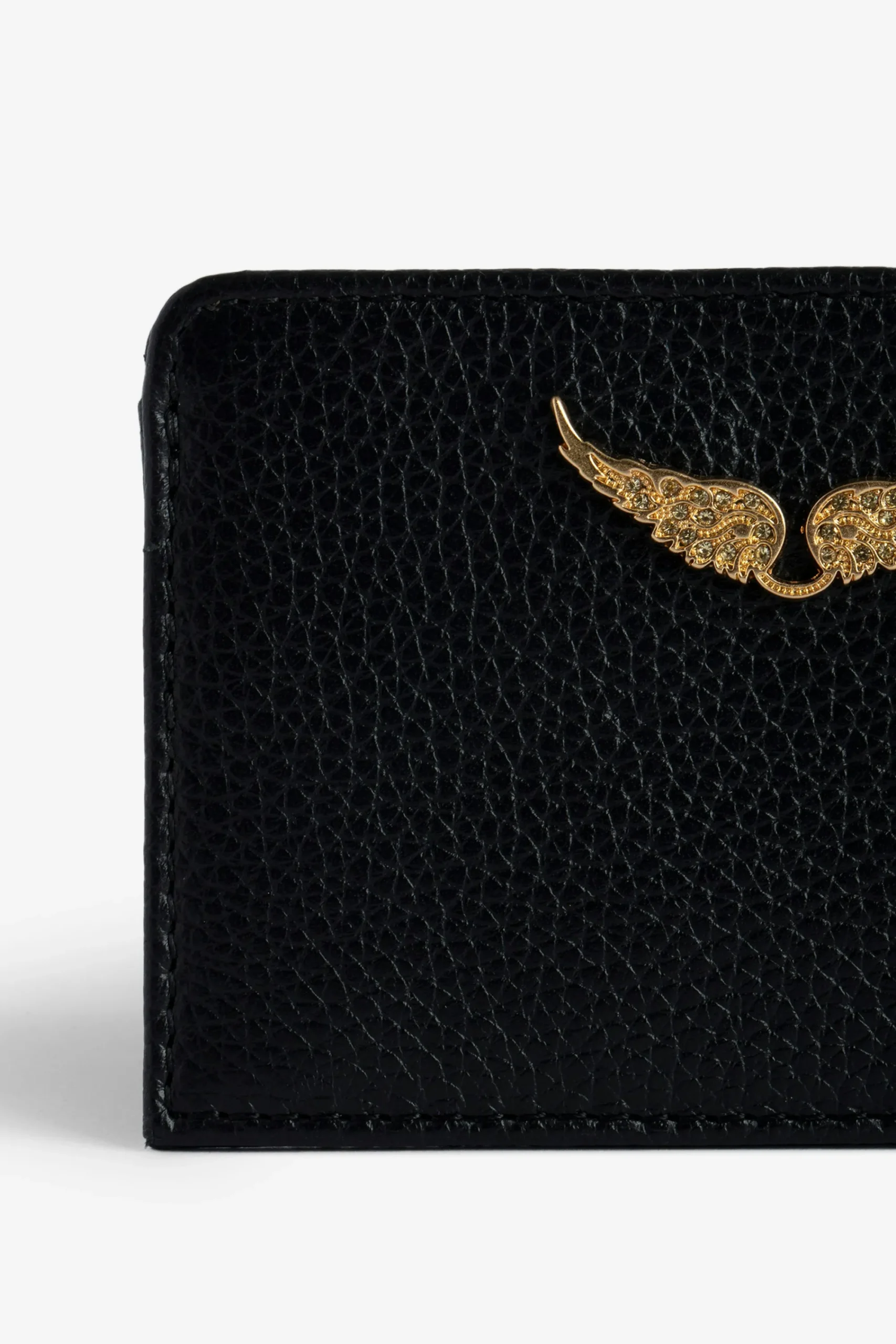 Porte-Cartes Zv Pass Femme En Cuir Grainé Noir Et Doré