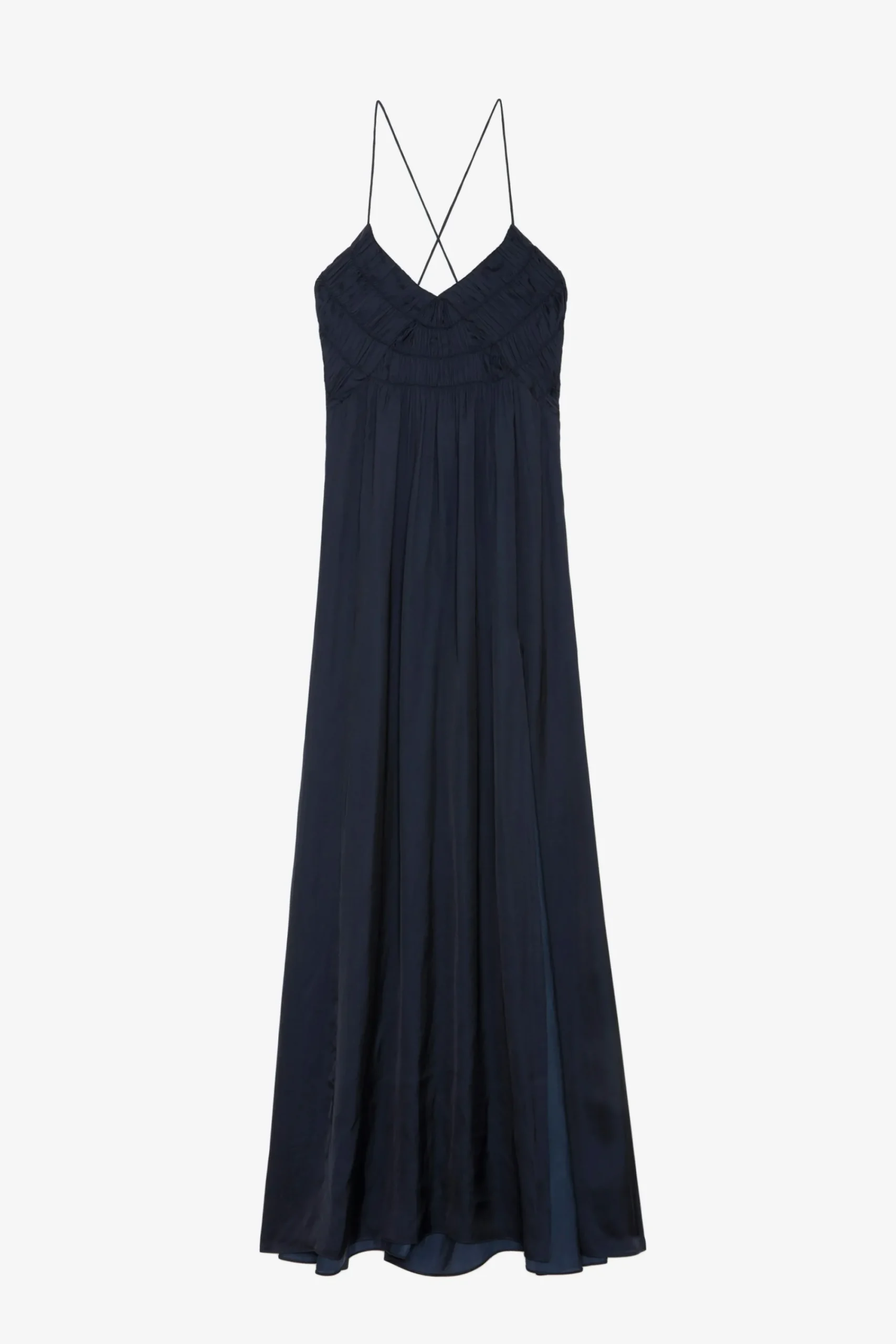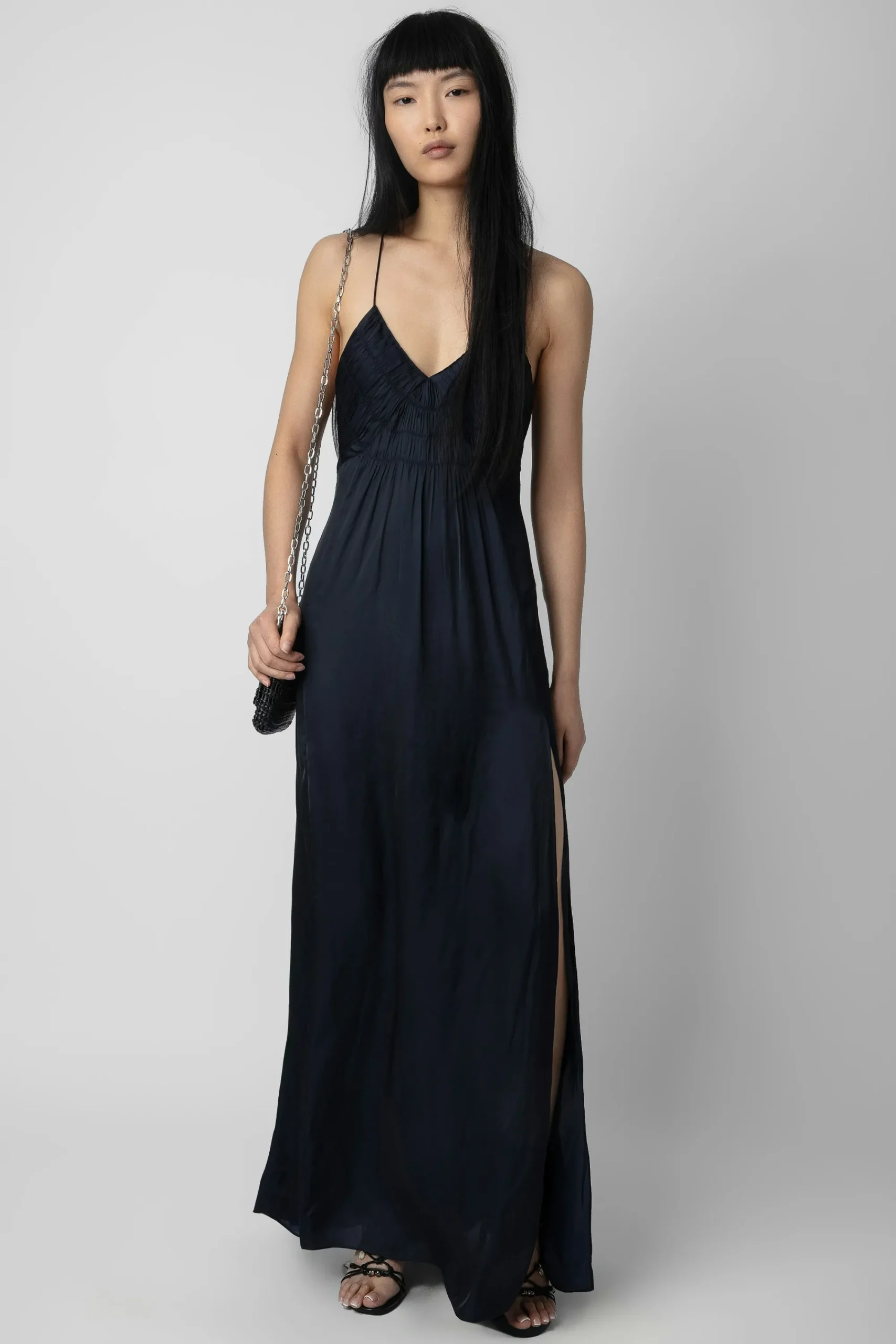 Robe Longue Fluide Esprit Lingerie En Satin Bleu Marine Encre