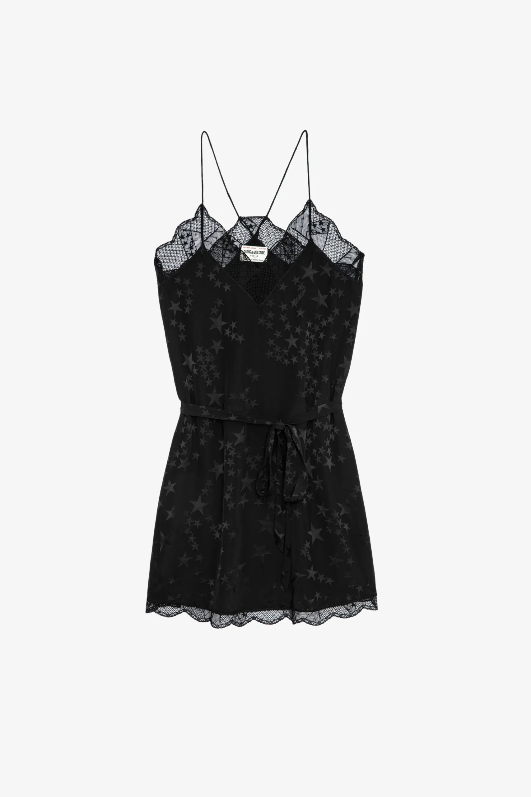 La Robe En Soie Ristyz Se Pare De Détails Précieux : Un Jacquard Constellé D’Étoiles Brillantes Et Des Bandes De Dentelle Graphique Délicatement Transparentes. Doté De Fines Bretelles, Il Présente Une Ceinture À Nouer Ton Sur Ton À La Taille.