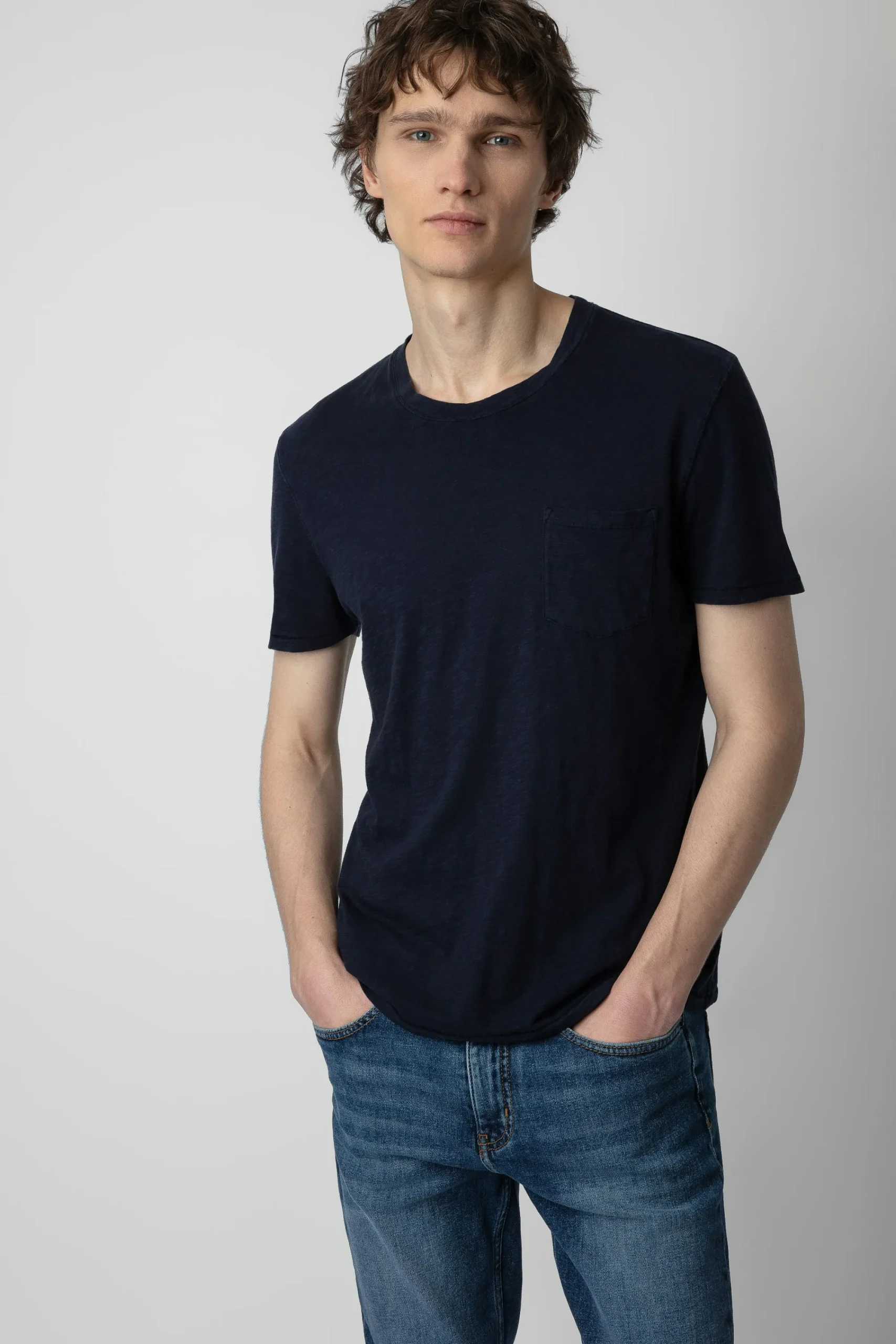 – T-Shirt Homme En Coton Flammé Bleu Marine Zadig&Voltaire