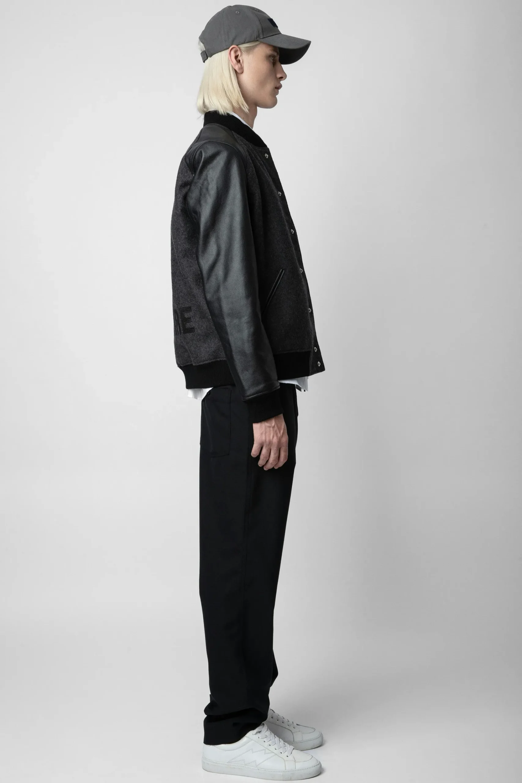 – Blouson Universitaire Homme En Cuir Et Laine Gris Anthracite