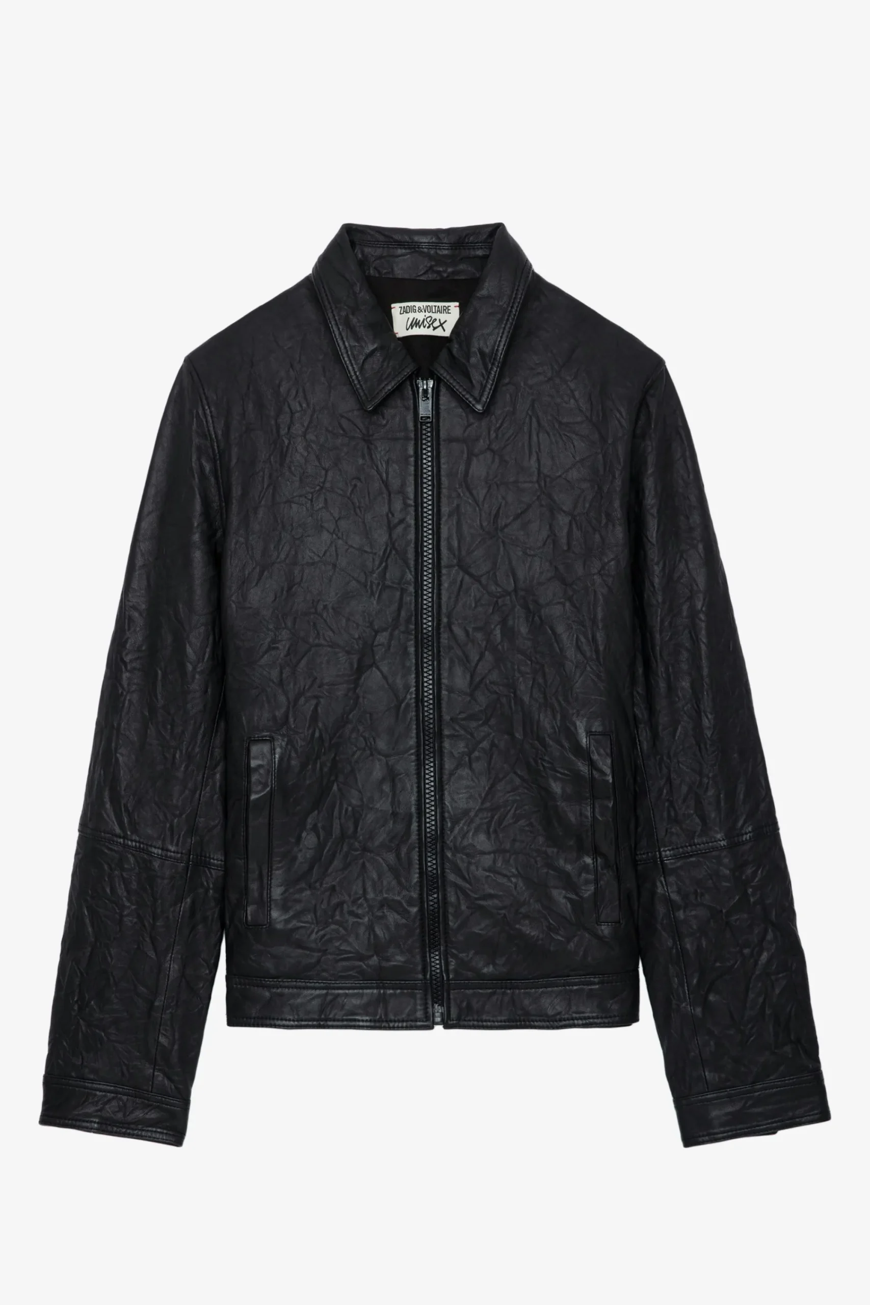 – Blouson Unisexe En Cuir Froissé Noir