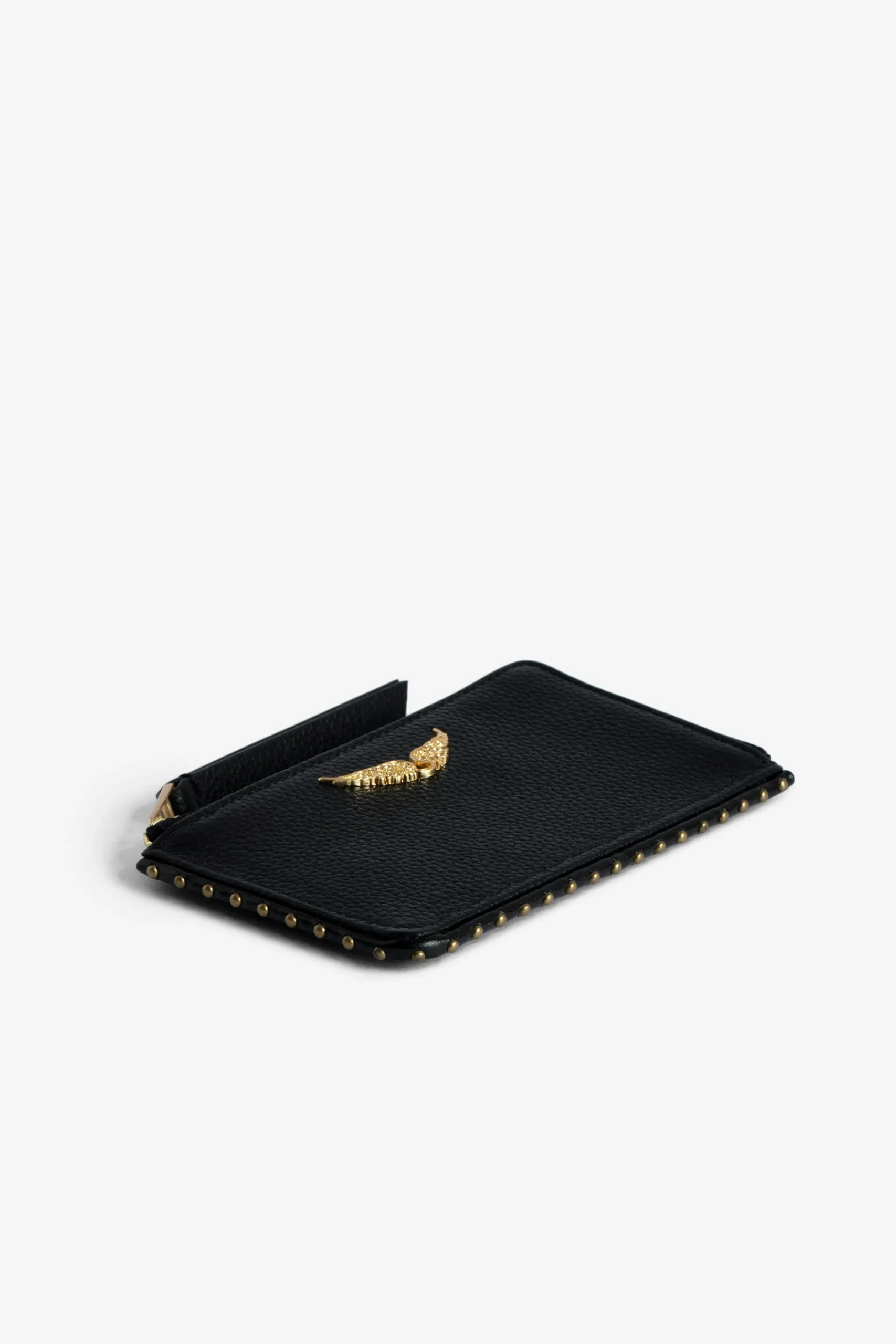 – Porte-Cartes Femme Zv En Cuir Grainé Noir Et Doré