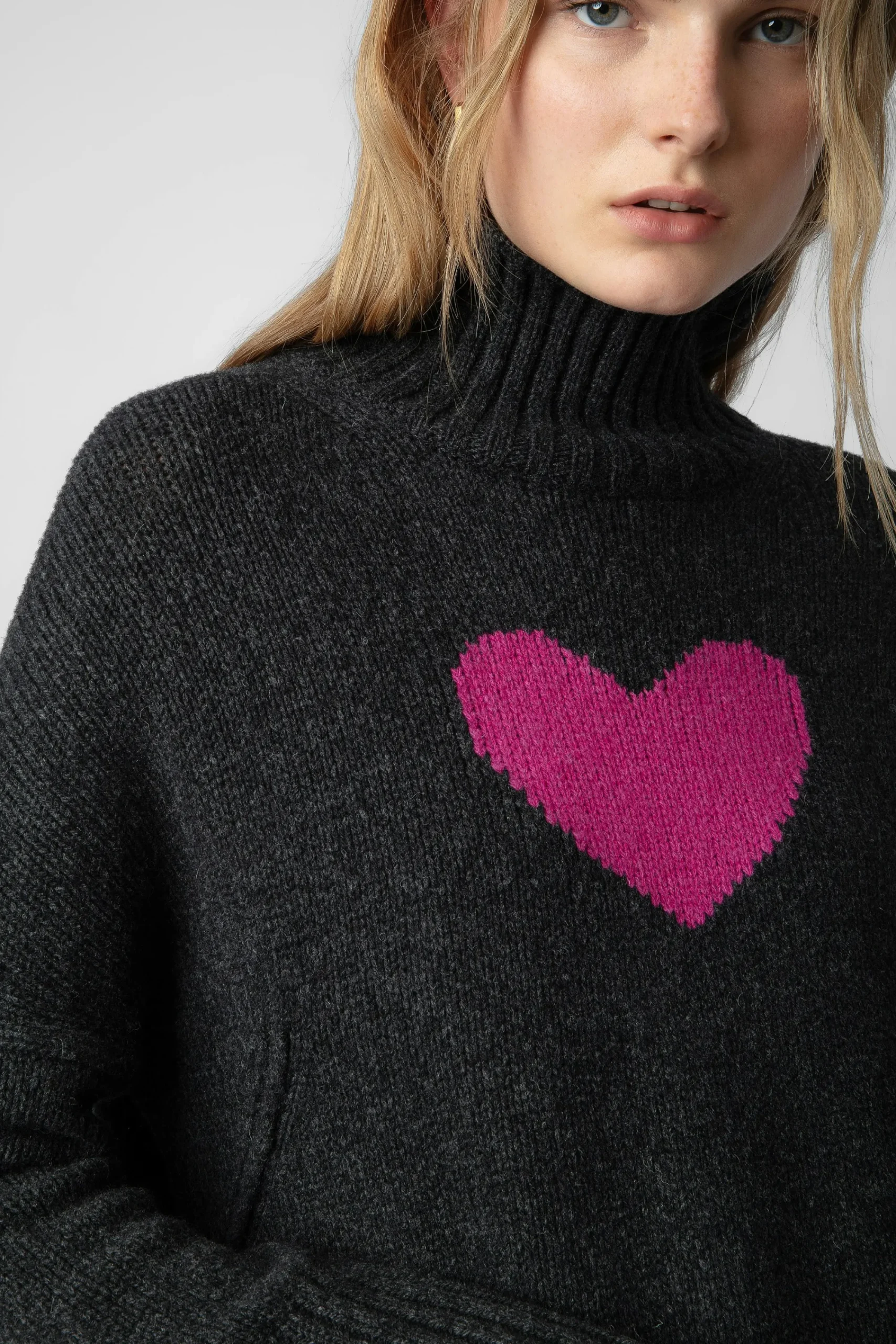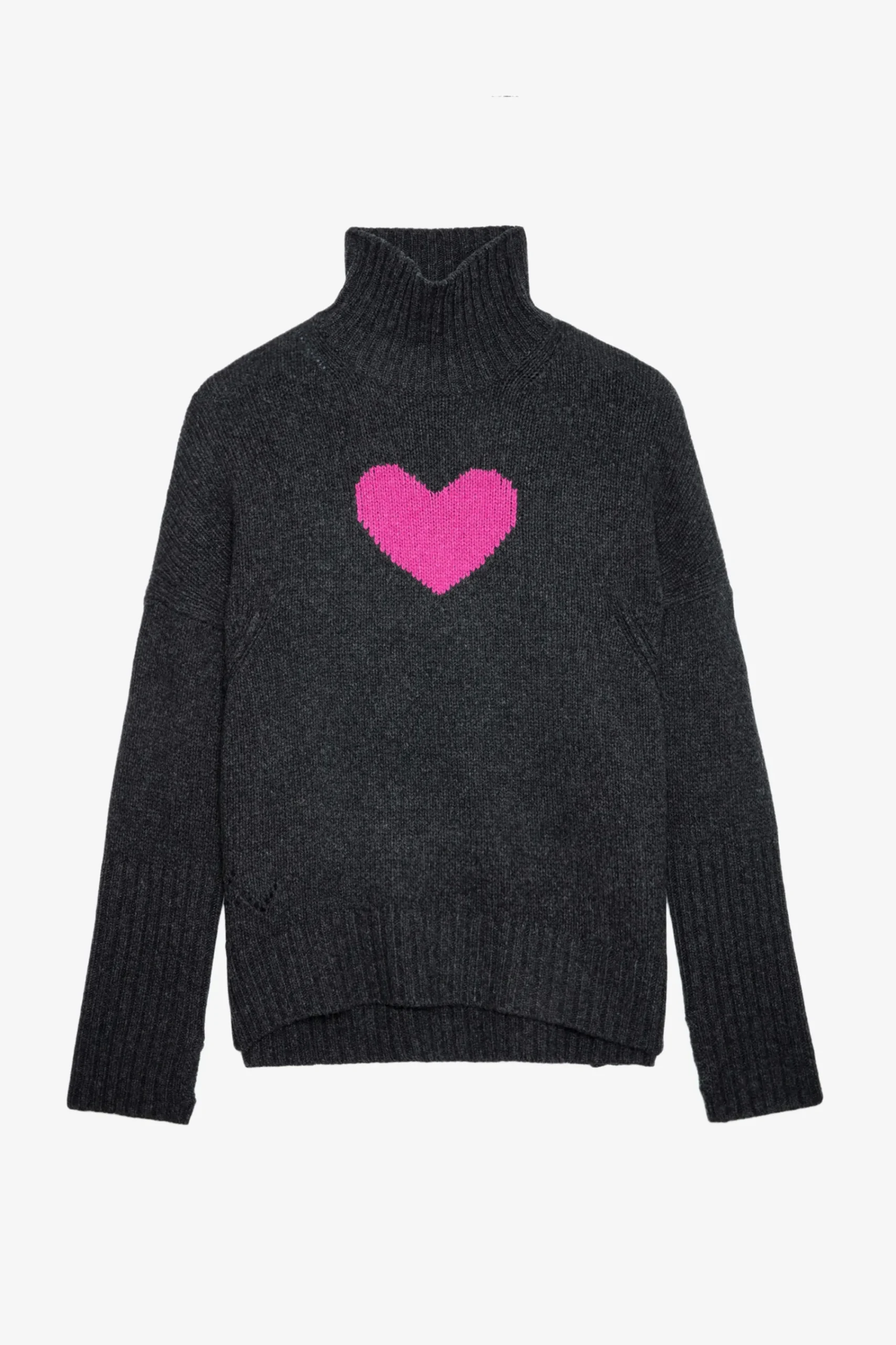 – Motif Coeur En Jacquard Intarsia Contrasté Et Signature Zv En Pointelle
