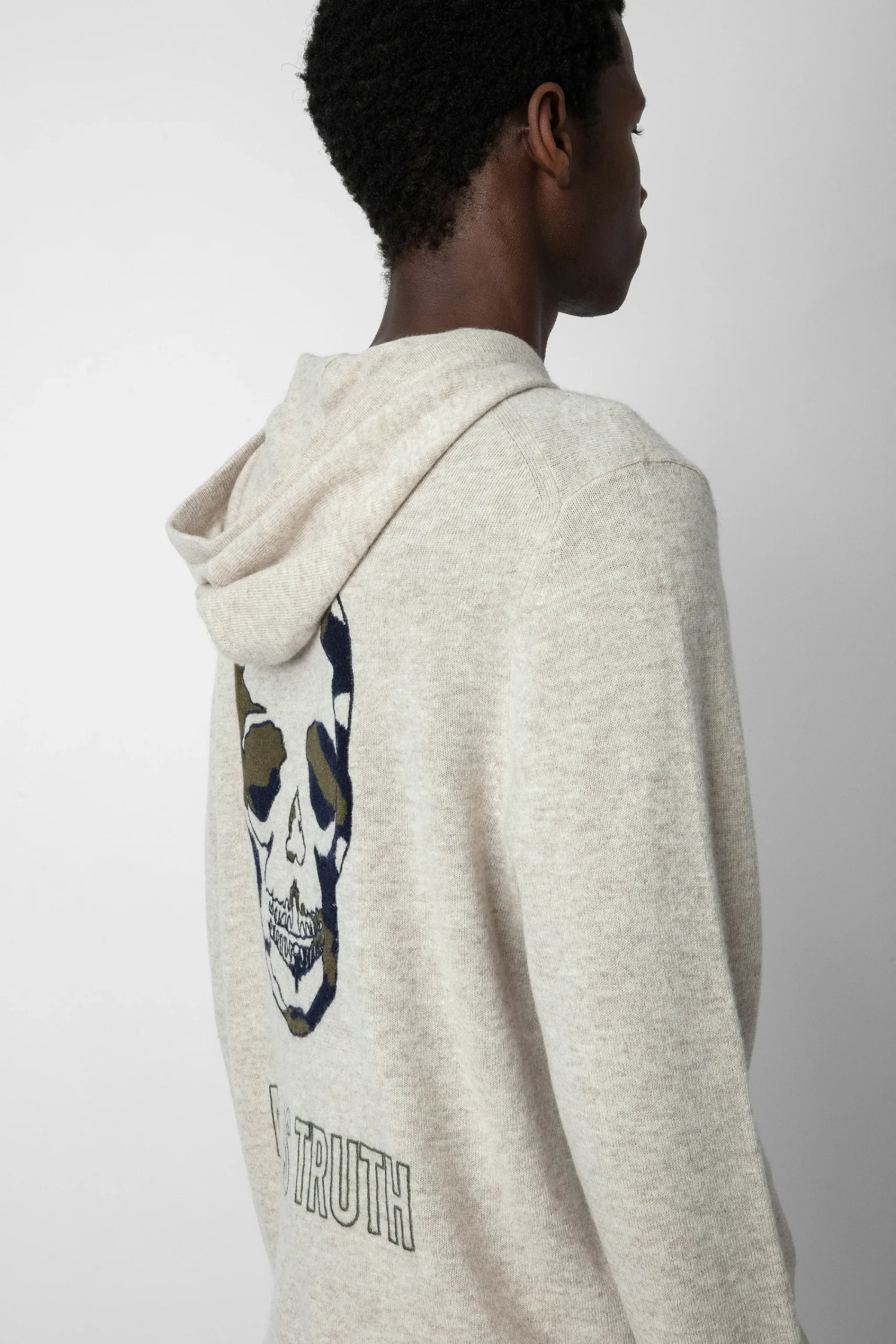 – Motif Flèche Sur La Poitrine Et Tête De Mort Camouflage Au Dos En Jacquard Intarsia