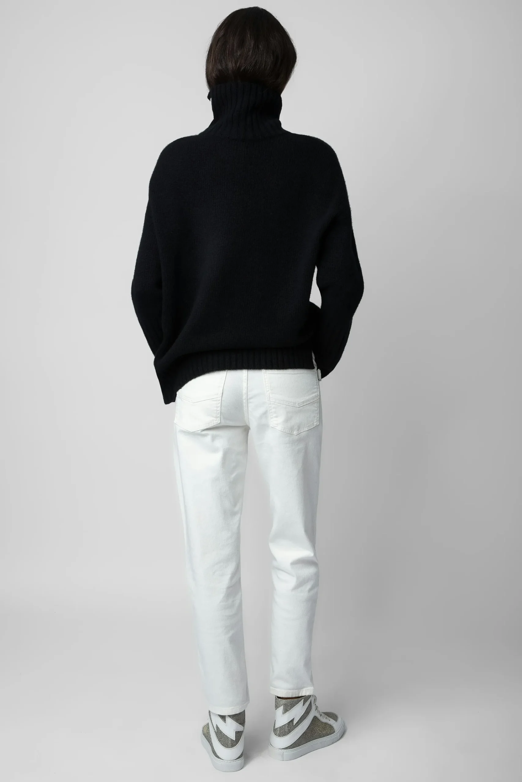 Ce Pull En Cachemire Doux Et Luxueux Possède Un Large Col Roulé Côtelé Et Des Boutons Sur L’Épaule.