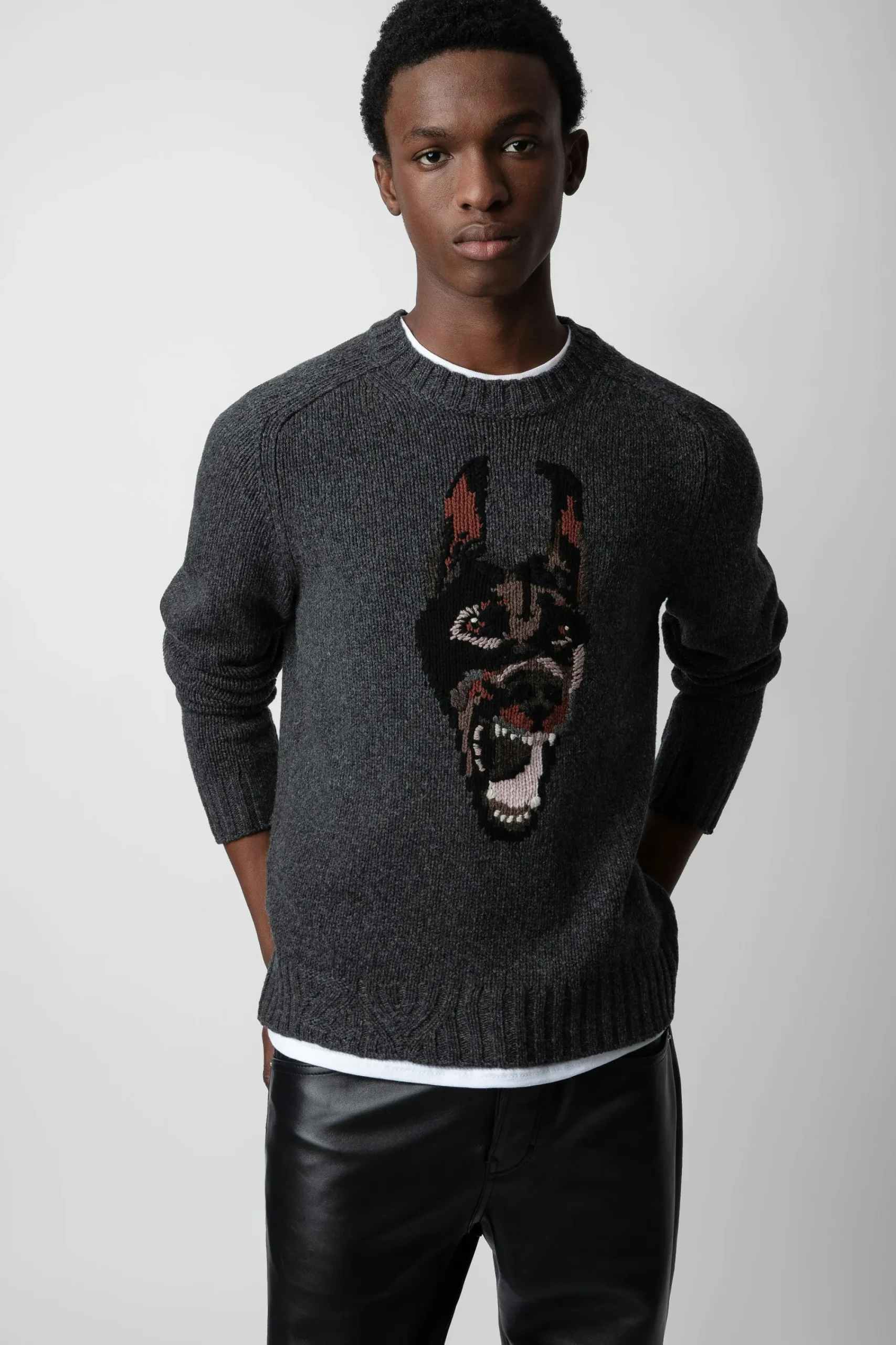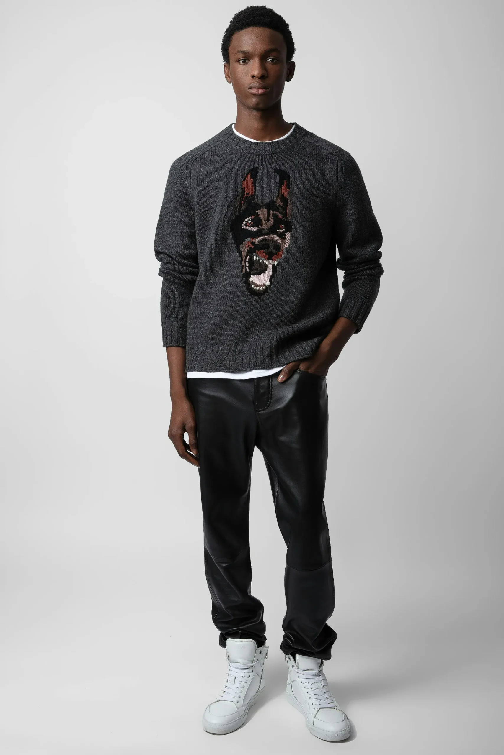 – Motif Doberman En Jacquard Intarsia Et Signature Pointelle Zv Sur Le Devant