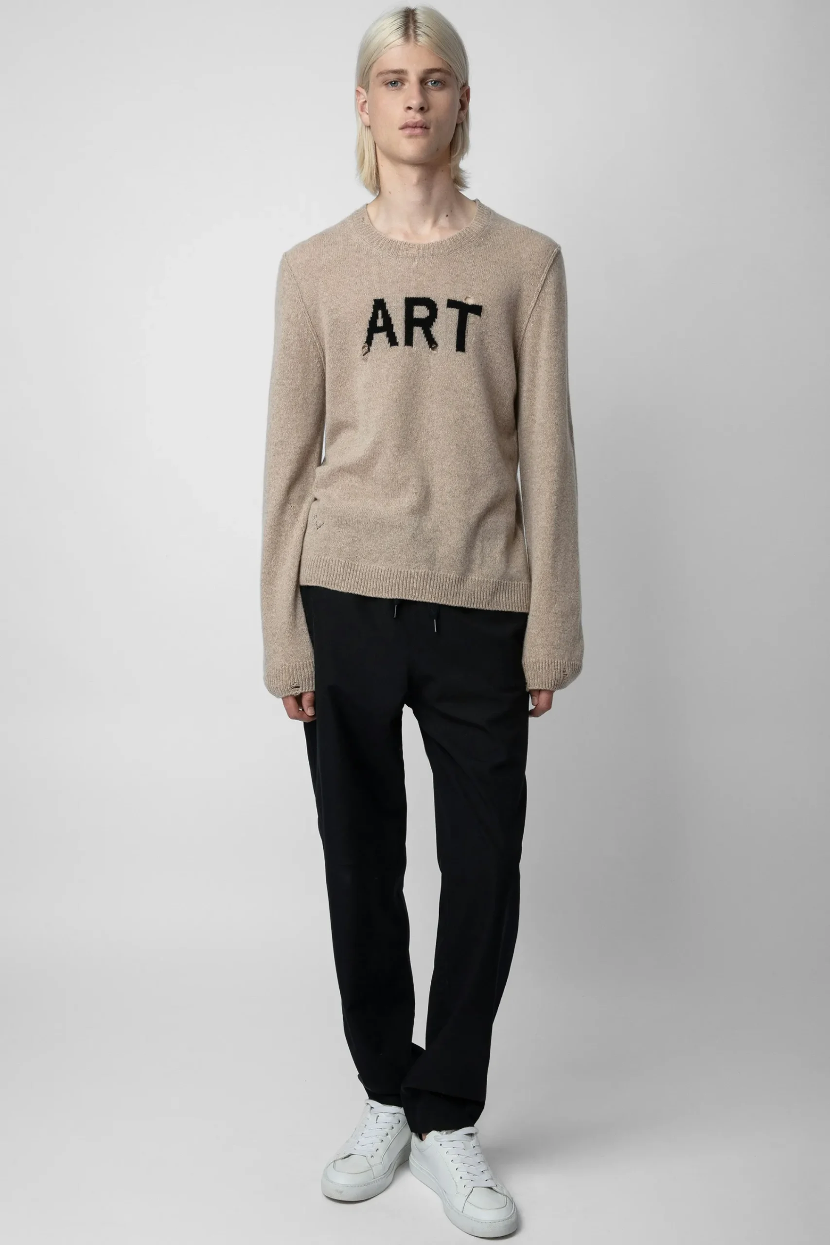 – Slogan « Art » En Jacquard Intarsia Sur Le Devant Et Signature Zv En Pointelle