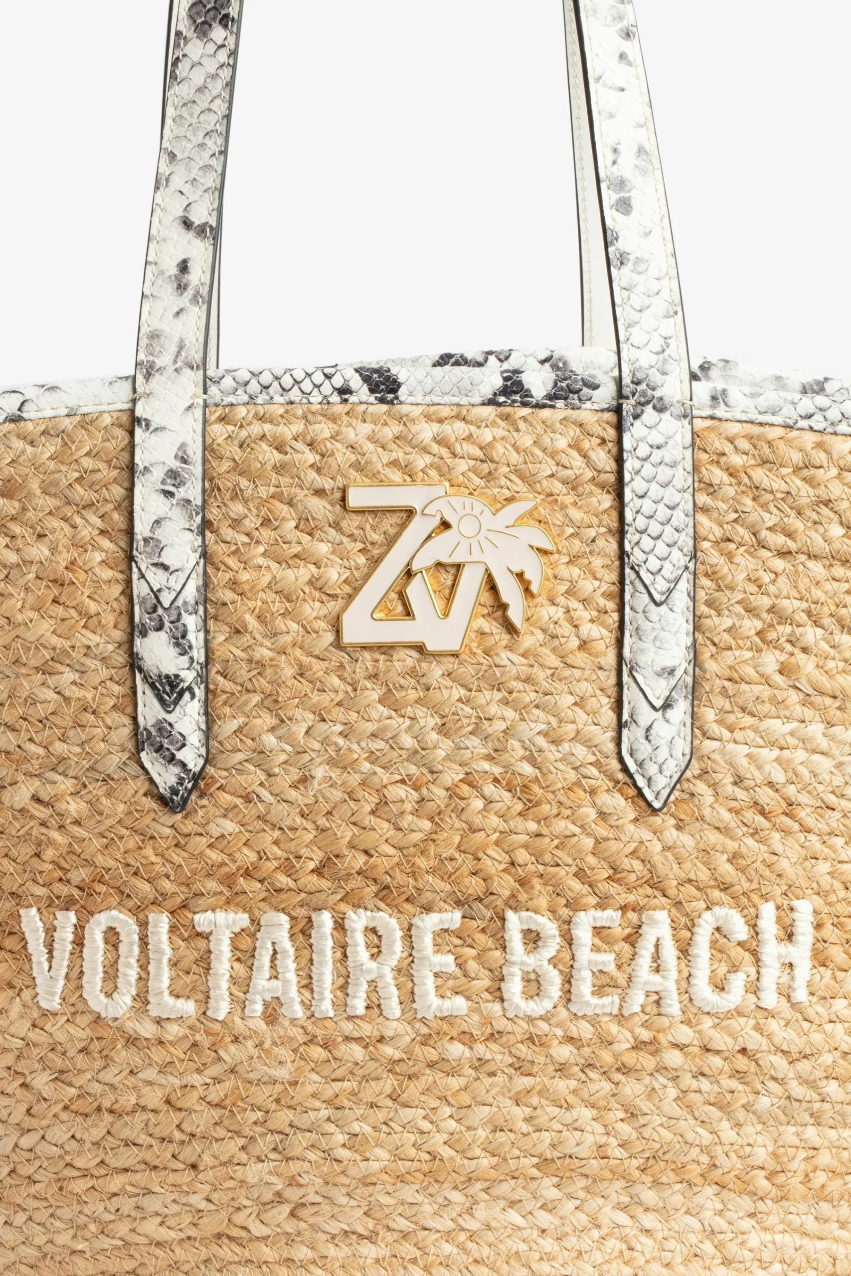 Chic, Bohème, Rock : Ce Sac En Paille Brille Par Son Charme Zv, Son Slogan « Voltaire Beach » Brodé Et Ses Anses En Cuir Effet Serpent. Porté À La Main Ou Porté Épaule, Il Complétera Votre Look Estival.